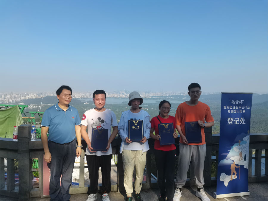 本次活动有15家注会评估行业单位和区财政局机关共21支代表队约150余名青年参赛,浙江耀信事务所由自告奋勇的五男四女共9人参赛,在“老和云起”统一签到集合后,区财政局领导作了赛前动员讲话,强调比赛目的及要求后一路向“北高峰”进发。